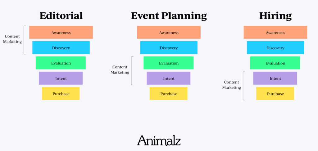 例如,他們可能需要為有興趣構建編輯日曆的用戶提供漏斗頂部的內容,但為需要產品以幫助招聘工作流程的用戶提供漏斗底部。