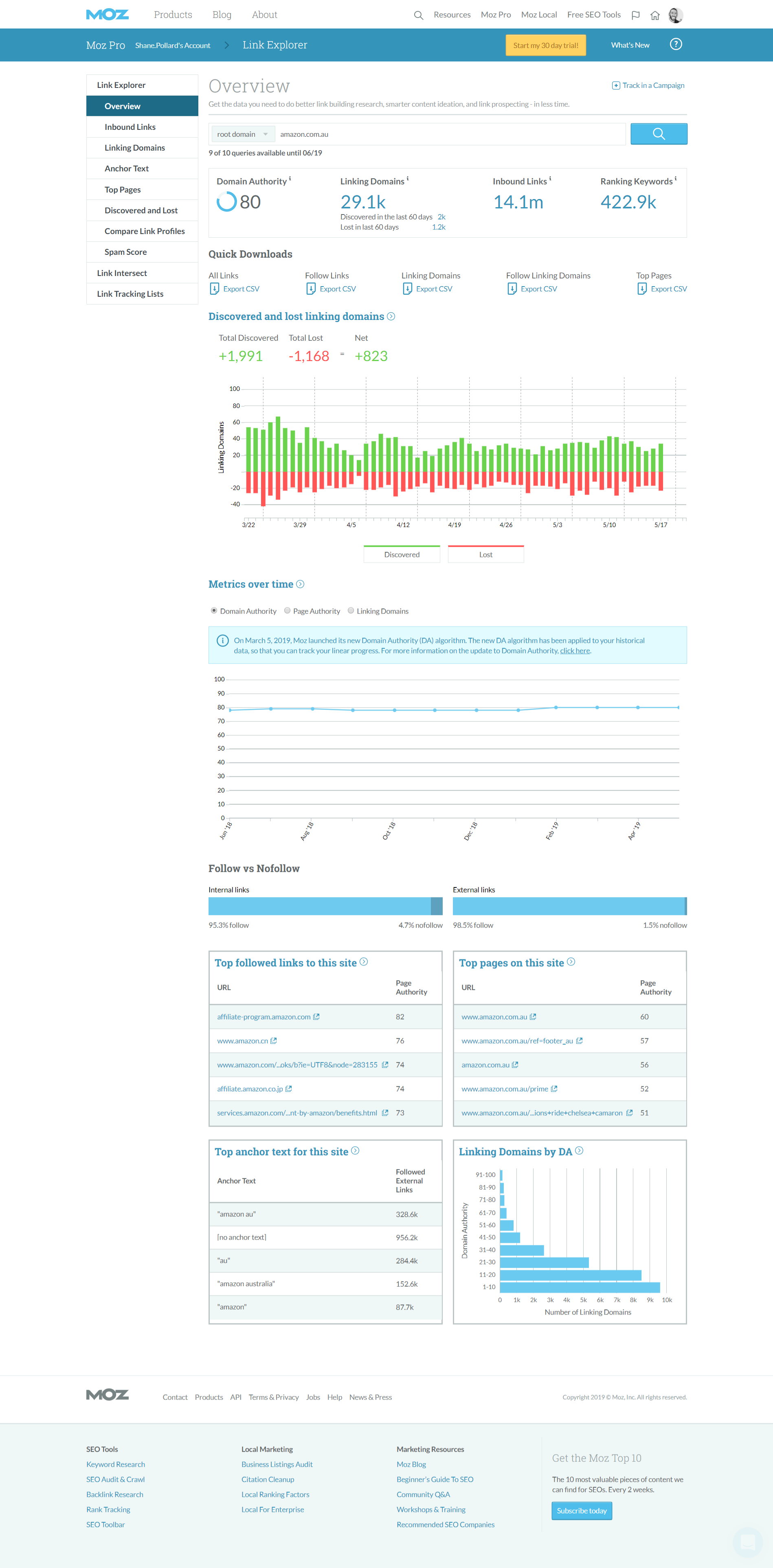他們甚至改進了 DA 指標“Domain Authority”是一個 Moz 指標,用於對 Google 的域權威點進行評分。