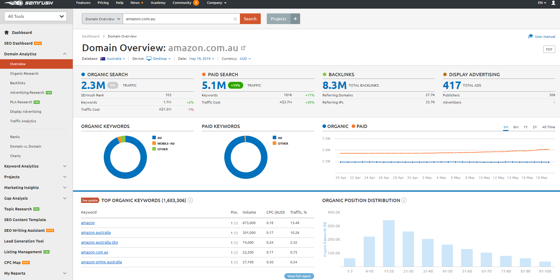 - 儘管它提供了大量數據,但它不會像其他 SEO 工具那樣深入細節。 如果您是高級 SEO 專家,SEMrush 可能更合適。