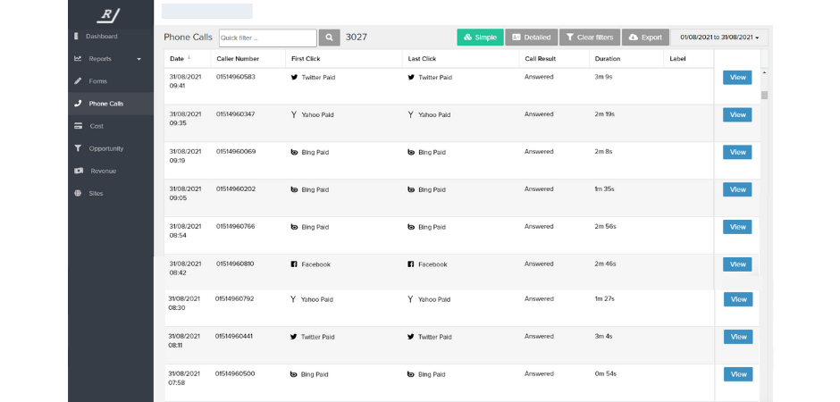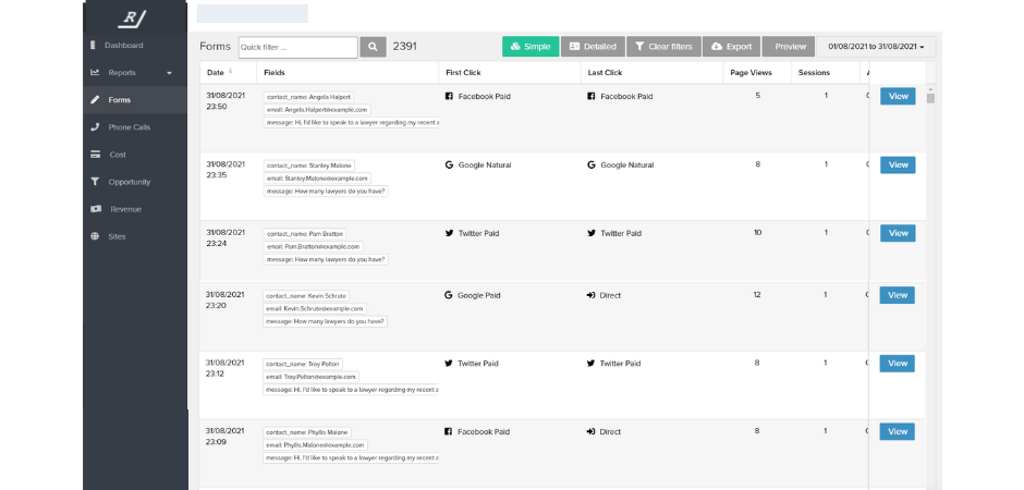 Ruler 將跟踪表單填寫、電話和實時聊天對話,這意味著您擁有更多關於您正在生成多少潛在客戶以及它們來自何處的數據。