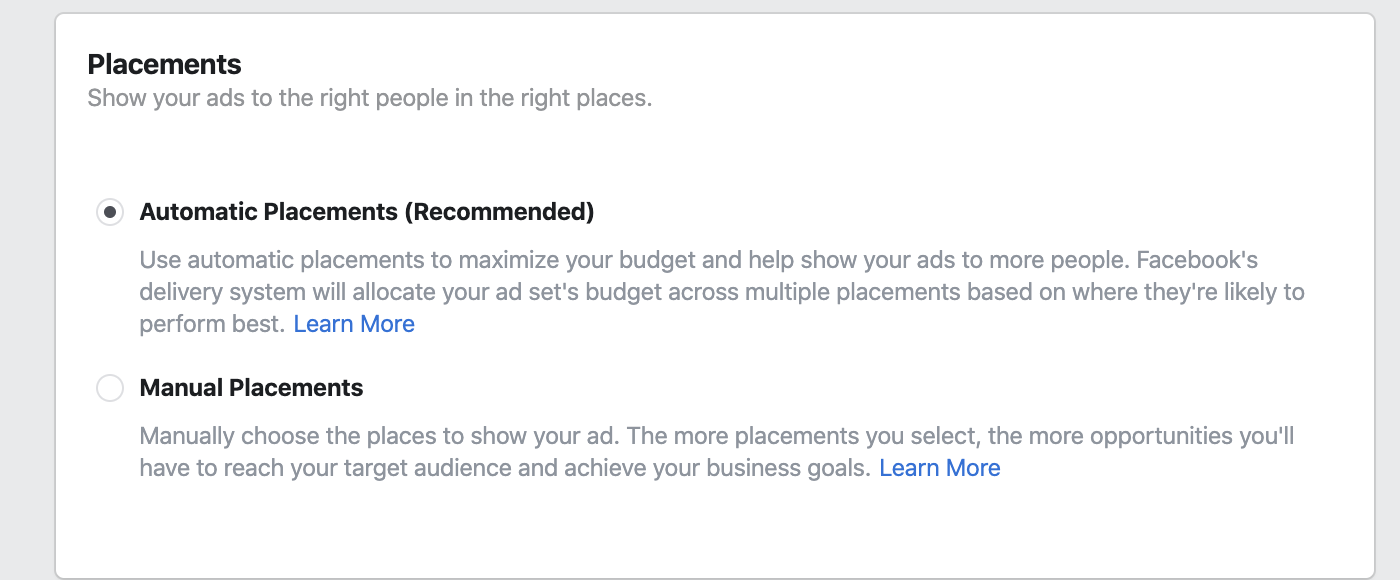 最後,請務必花費適當的時間來構建您的人口統計數據,通過調整年齡、性別、收入水平等,將受眾範圍縮小到最有可能轉化的受眾。 選擇手動而不是自動放置(默認),堅持新聞源和故事(不包括信使、第三方網站和應用程序等)。