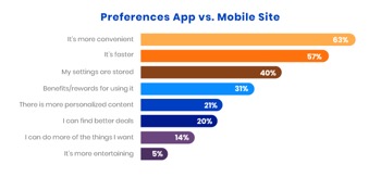 該圖形概述了購物者由於多種原因如何找到更方便,更快和更好的體驗的移動應用程序。 使用應用程序,購物者無需記住URL或登錄憑據。