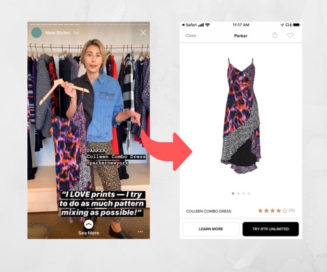 時尚品牌Rent the Runway在其Instagram故事中嵌入了深層鏈接,這些鏈接在其iOS應用程序中調用特定的產品頁面,以簡化客戶的訂購過程。