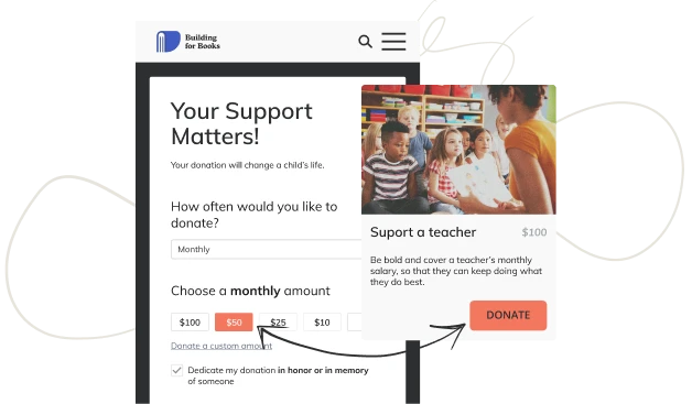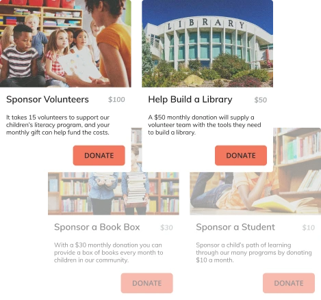考慮在您的活動頁面上創建影響塊,向支持者準確展示他們的捐款可以做什麼來創造積極的變化。 包括您的事業支持的受益人的引人注目的圖像和簡短的文字描述,以顯示該活動將推動您的使命前進的各種方式。 您甚至可以在您的電子郵件呼籲和社交媒體上重新利用這些影響塊,以傳達您的活動的有意義的價值。 與您的捐贈者的每一個接觸點都會讓他們更接近您的“捐贈星期二”故事。