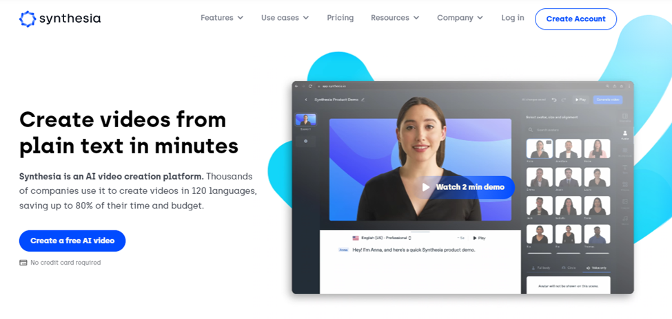 Synthesia 使用戶能夠使用人工智能 (AI) 和機器學習 (ML) 技術創建和編輯視頻。 它利用深度學習算法將人類動作、表情和手勢映射到動畫角色上,允許用戶創建具有逼真化身的視頻內容,可以模仿他們的動作並用他們的聲音說話。 Synthesia 的軟件還可以根據文本輸入自動生成視頻,使其成為希望快速高效地創建高質量視頻內容的企業和個人的有用工具。 此外,Synthesia 的視頻編輯功能允許用戶自定義頭像的外觀和視頻的視覺效果,以創建獨特且具有專業外觀的最終產品。