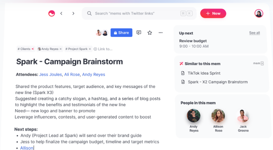 Mem 是一個由 AI 驅動的工作區,可幫助您保持井井有條並增強創造力。 它整合了您所有的工作和個人生活,識別相關性並最大化您的知識。 Mem 提供專門針對您的需求量身定制的個性化體驗。 它最大程度地減少了乾擾,並通過其智能通知和個性化見解幫助您保持專注。 此外,Mem 的 AI 技術通過推薦合適的內容和合作夥伴來提升創造力。