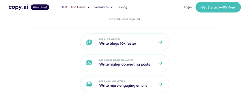 借助 CopyAI,通過各種功能(包括 AI 支持的內容編輯器、內容優化和社交媒體後期生成)使內容創建變得更加容易。 該工具消除了聘請全職作家來製作高質量內容的需要。