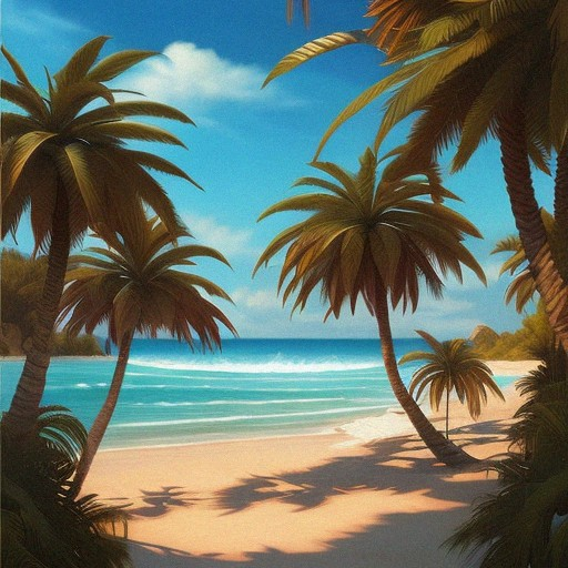 如果你想畫出“背景丙烯畫中有棕櫚樹和明亮藍天的迷人海灘”,你會怎麼做?