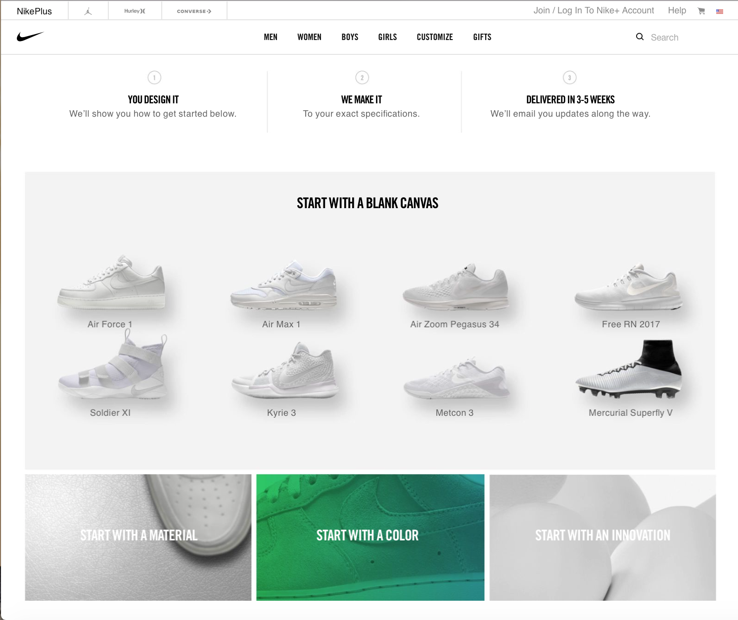 - 您想要更多的曝光率:如前所述,亞馬遜是在線零售的巨頭,因此在亞馬遜上銷售您的部分目錄以將您的產品展示給更多消費者是有意義的。一種策略是出售您的核心產品的分類產品,並直接向消費者提供定製或限量版產品。耐克——亞馬遜上的第一品牌——在亞馬遜上銷售有限的選擇,同時在自己的網站上提供量身定制的定制和獨家產品。
