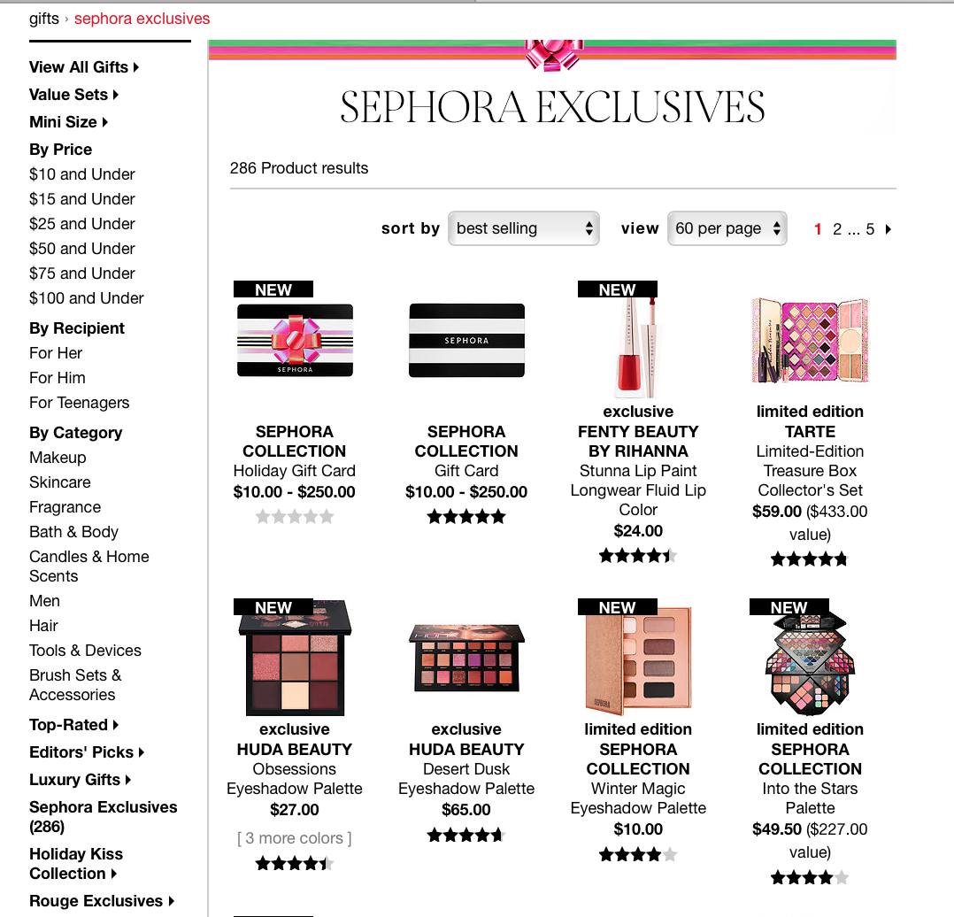 - 提供獨家產品和服務:通過銷售網絡上其他任何地方都沒有的商品,您可以吸引在線購物者從您的電子商務商店而不是在亞馬遜上購買。 這也消除了與競爭對手的競價戰,讓您可以自行設定價格。Sephora 是一個成功地用獨家產品吸引顧客的品牌例子。 這家化妝品公司擁有多種僅在絲芙蘭銷售的產品以及限量版商品。