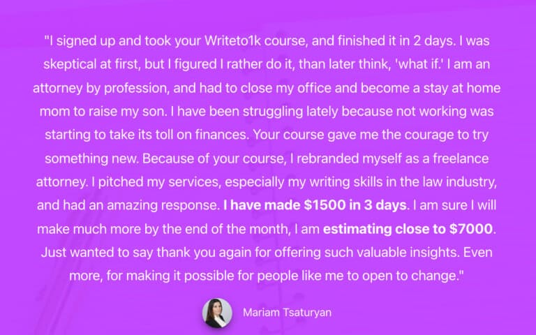 作為一名律師,您可以像 Writeto1k 課程的學生 Mariam Tsaturyan 那樣為您的服務提供自由職業者。