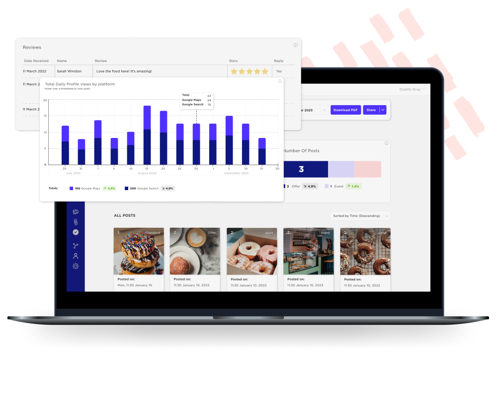 使用 Sked Social 的一體式 Google 商家資料解決方案簡化您的在線形象,並提供先進的日程安排、AI 輔助審查管理和當今的績效洞察。