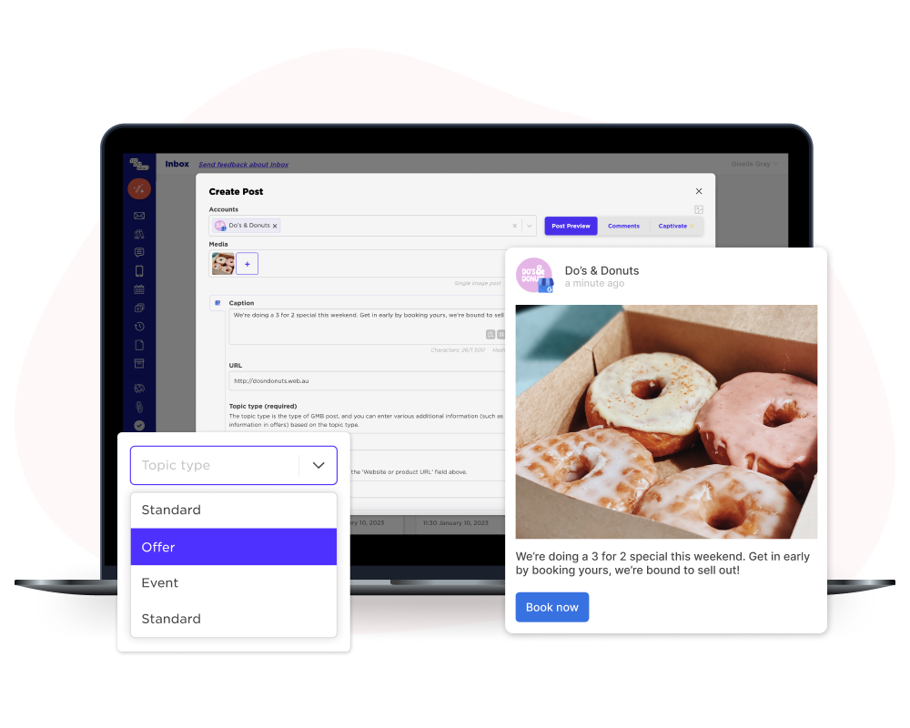 在您的團隊用於計劃、安排、參與和報告所有社交媒體活動的相同工具中集中和簡化您的所有 GBP 管理,減輕了管理社交媒體的壓力,並確保您不會錯過任何消息或通知,同時每月節省時間。