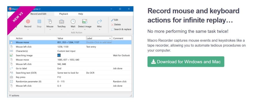 忘記重複的任務; 使用 Macro Recorder 來自動化您計算機系統上的所有那些繁瑣的過程。 它捕獲擊鍵和鼠標事件,就像磁帶錄音機無限重放的方式一樣。