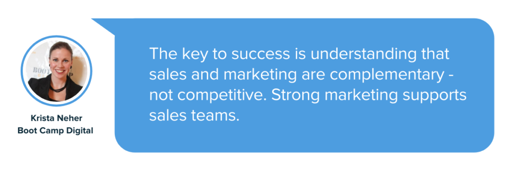 正如 Boot Camp Digital 首席執行官 Krista Neher 所說:“成功的關鍵在於了解銷售和營銷是互補的,而不是競爭。 強大的營銷支持銷售團隊。”