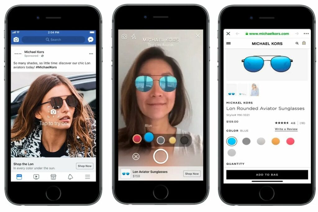 借助 AR,Facebook 和 Instagram改善了用戶的社交購物體驗。 儘管目前只支持幾種類型的產品,但該技術對消費者市場的買家來說具有很大的潛力。