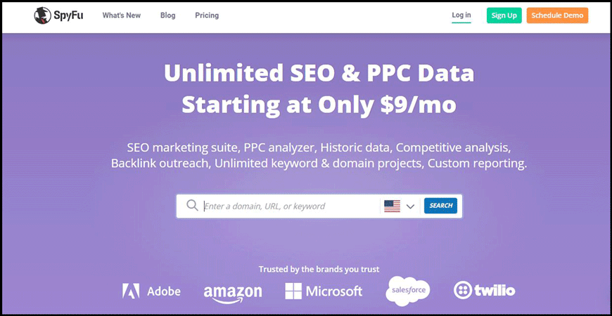 SpyFu 可以從競爭對手的網站中篩選出最好的。 好吧,不是全部。 它提供了網站上表現最好的關鍵字的過去和當前表現記錄的詳細列表。 只需輸入鏈接地址,它就可以幫助您從任何網站中找到效果最好的關鍵字。 您還可以選擇多個網站並找到最佳排名關鍵字。 您所要做的就是登錄以一次搜索各種網站。