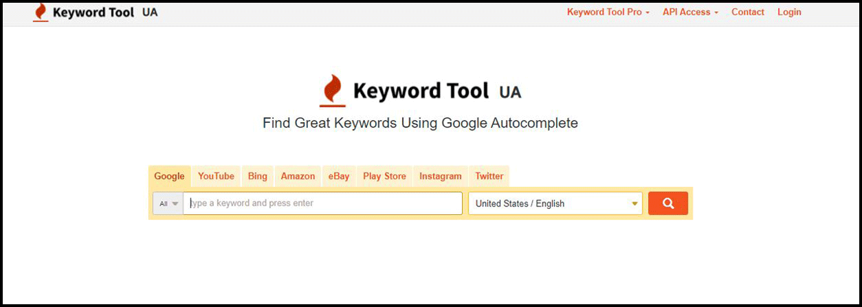 - 選擇您認為最適合您的品牌的任何搜索引擎。 關鍵字工具有谷歌、亞馬遜、Instagram、PlayStore 等選項。