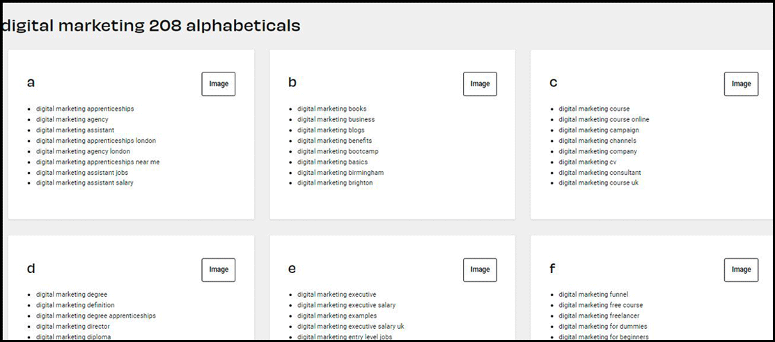 AnswerthePublic 以獨特的方式呈現其關鍵字。 他們以視覺上吸引人的形式呈現它。 這個關鍵字規劃器最好的部分是您無需註冊即可免費使用它。