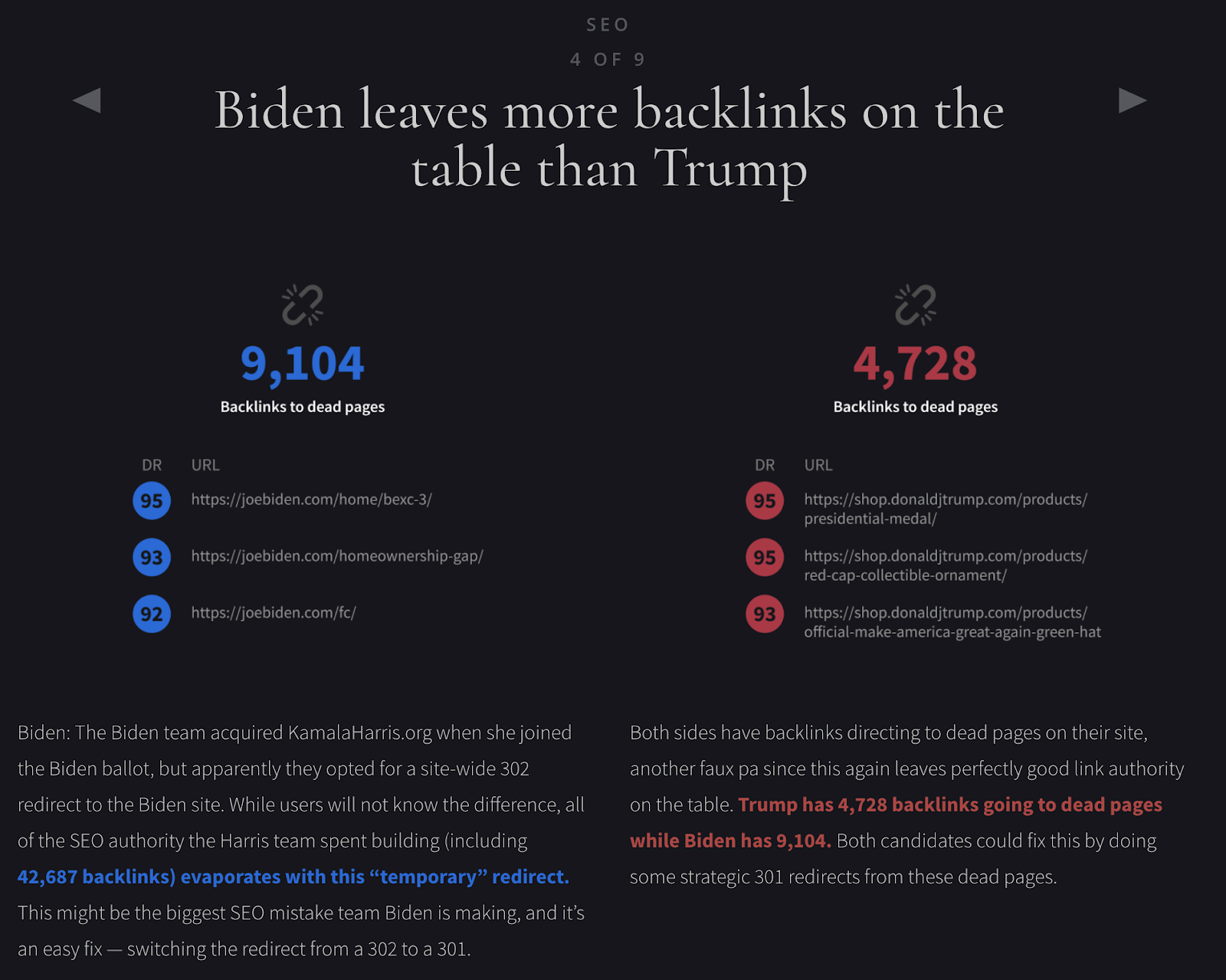 許多人都知道 SEO 以其漫長的時間線來查看結果而聞名。 因此,在像總統選舉這樣快節奏的競選活動中,SEO 是並且確實應該是次要優先級。 然而,這兩個活動都犯了一些非常簡單的 SEO 錯誤,只需進行兩小時的簡單審核即可避免這些錯誤。 而且,無論優先級如何,像這樣的簡單修復總是值得的。