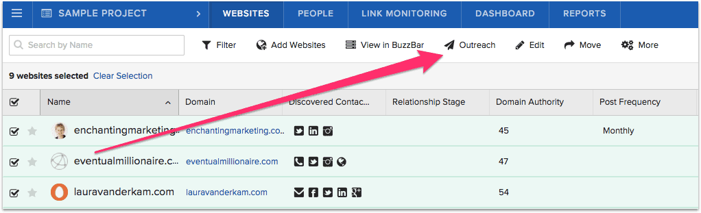 在開始 BuzzStream Outreach 之前,您至少需要在屏幕最左側勾選一個複選框:
