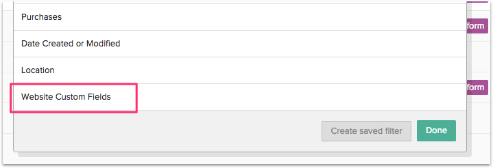 單擊頂部菜單中的過濾器選項卡並向下滾動,直到看到“網站自定義字段”: