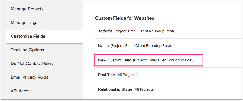 注意:您必須向下滾動,因為默認視圖不顯示“網站自定義字段”。