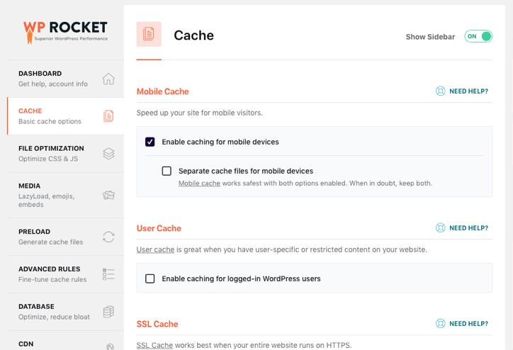 WP Rocket 帶有為 WordPress 登錄用戶啟用緩存的選項。